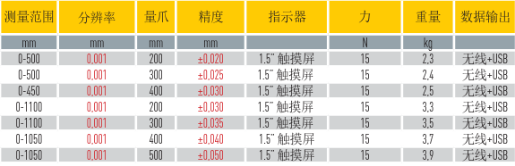 微米級輕長量爪力卡尺